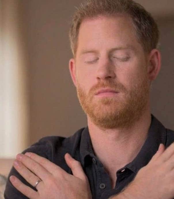 英國哈利王子上個月剛參與Apple TV的紀錄片(圖片來源:Apple TV),片中,他在心理師導引下,進行一場奇怪的「療程」,只見他雙手交叉、置於肩上,雙手不定時的拍打自己自己,伴隨著身體搖晃,這麼簡單的動作,對曾經遇過喪母之痛的他來說,就有了療癒的效果。